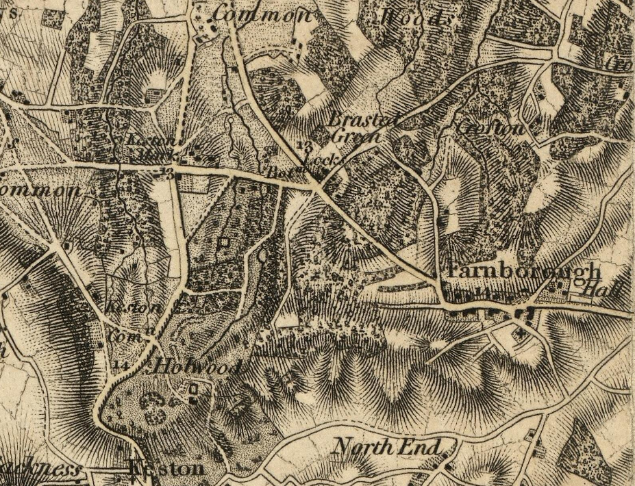 The section of the High Road between Bromley and Sevenoaks became a turnpike road in 1749. This was of considerable importance to the development of the village, which provided services and provisions to the coach operators and their passengers. This heritage is reflected in the village sign, see above. The central part of the village retains a shape and character that would be recognisable to a visitor from many centuries past. One reason for this is that the railway never came to Farnborough, although there were many proposals.