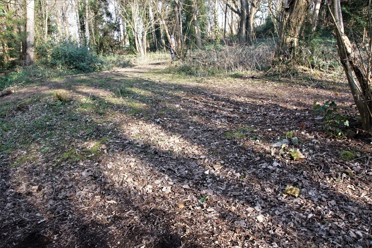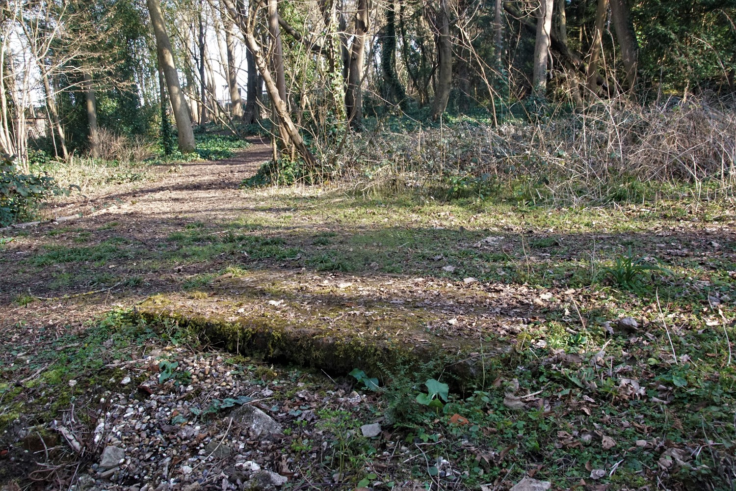 Alongside the Lodge the former driveway leads uphill to the location of Beechwood itself, now reverted to woodland.The platform where the house once stood can still just be made out.