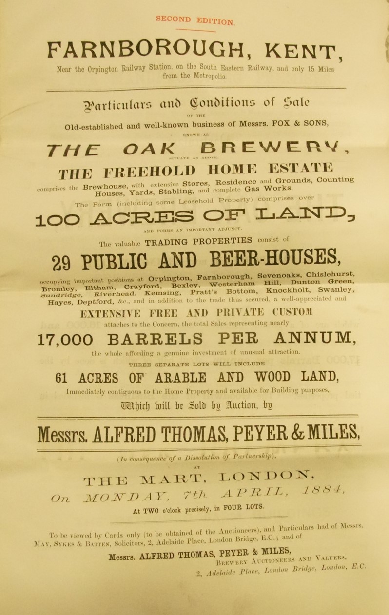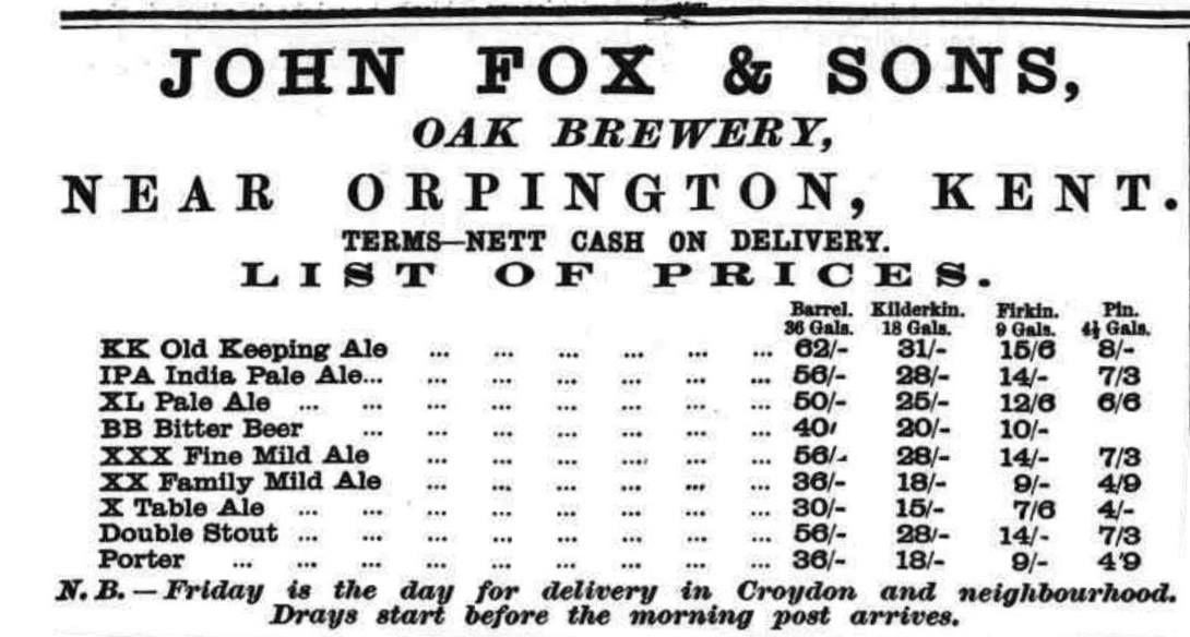 This page contains material from the Fox & Sons page on the website www.breweryhistory.com, reproduced here with the permission of the author Peter Moynihan, who also wrote the book Kentish Brewers and the Brewers of Kent.