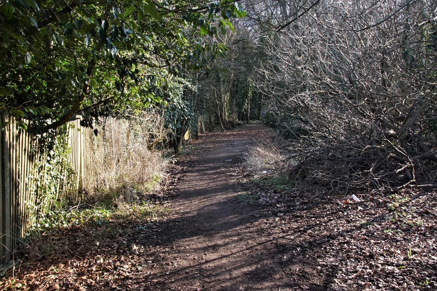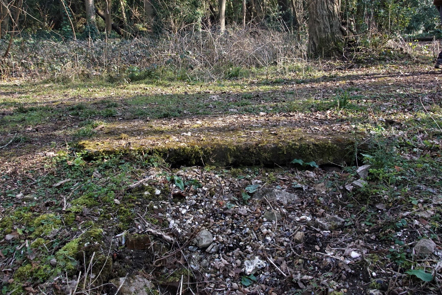 Alongside the Lodge the former driveway leads uphill to the location of Beechwood itself, now reverted to woodland.The platform where the house once stood can still just be made out.