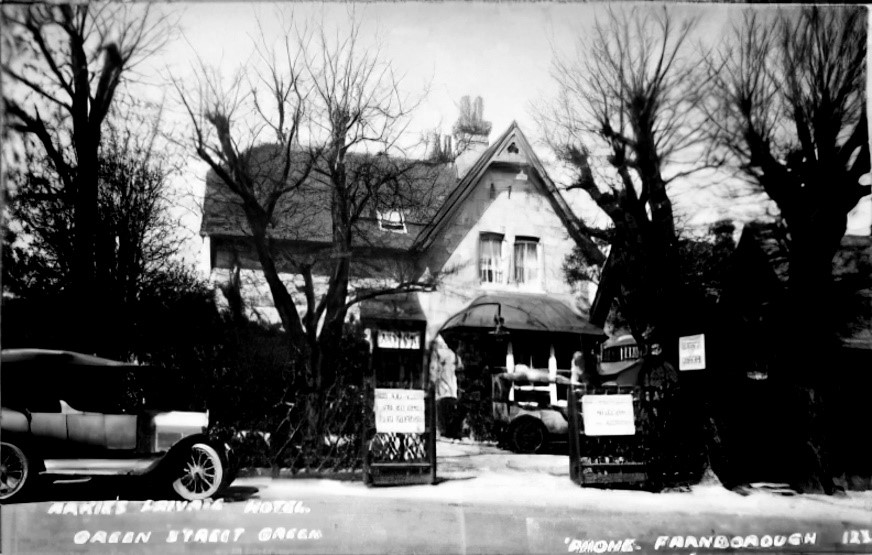 In 1925 Arkies also became a tennis centre with three hard courts and advertised the chance to join “The Old Pantile Club” – fully-licensed and offering “social amenities” as an enticement to prospective members. Unfortunately, Arkies’ courts lay roughly where the car park of the present Rose and Crown is today so they were cast adrift from the house when the Farnborough Bypass sliced through two years later – spelling doom for the business.