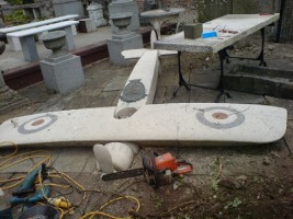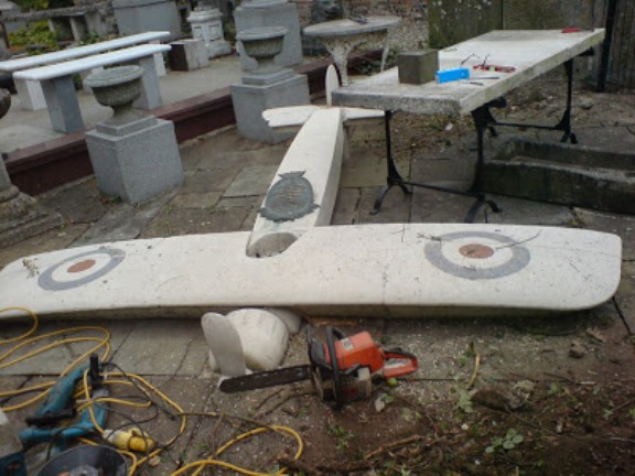 Twenty plus years after its removal from High Elms it was possible, at some expense, to recover the stone aeroplane. This has now been placed in the walled BEECHE centre at High Elms to allow it to be better protected.