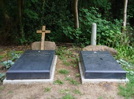 owned woodlands about 100 yards from St Giles churchyard. Between then and 1980, a number of family members were buried there, although not everyone who has their name on a monument actually is interred on the site (for example Harold and Eric are buried in British war cemeteries near where they were killed). From the 1930s no new graves were created. Instead, deceased family members were buried within existing tombs – most often under the Celtic cross which was John Lubbock’s grave. Their presence was marked by inscription on the sides and base of the cross. These can still be viewed today.