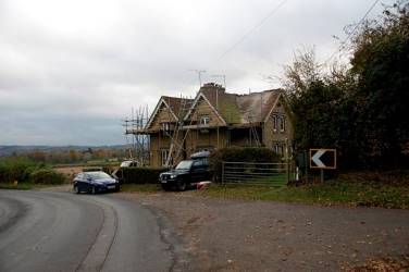 Continuing straight across the roundabout, the road heads toward Chevening, parallel with the M25. After a short while it bends to the left. The old entrance starts alongside the cottages shown in the photo above. It extends for about on mile and emerges behind the churchyard of St. Botulph's church in Chevening.