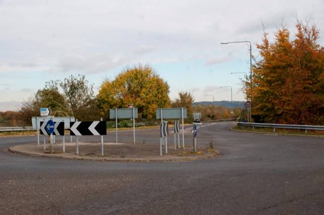 The 1835 branch is shown in the photographs above, and leads from the bottom of Polhill to this roundabout, coming in from the right.