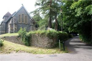Below the church it is difficult to make out the original ground level as there was later extraction of gravel from the ground at this location.