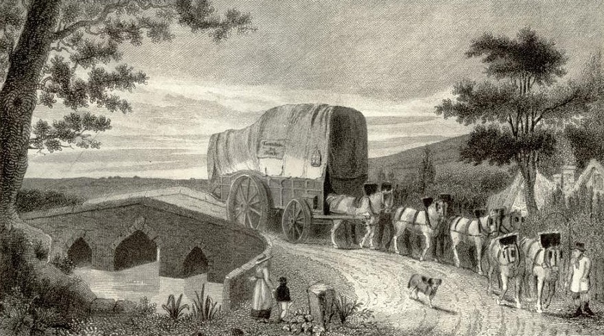 From the early 1500s 'stage wagons', resembling the 'prairie schooners' of the American West of the 1800s, were travelling the roads of Britain. Up to 30 passengers, or a mix of passengers and goods, were carried in these large four wheeled wagons travelling at between 10 and 15 miles a day, drawn by teams of horses or oxen.