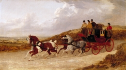 King Edward IV in 1481 had set up a postal system to carry messages of state and business across England on the most important routes. Post houses were established about 20 miles apart, with horses available to operate a relay system to speed the messenger. The public were permitted to use this postal system after 1583-4, and after 1644, the postal network was extended to all parts of the Kingdom. The postbags were carried by 'postboys' (the term was used irrespective of age), on horseback or driving postilion a small carriage, who gained a poor reputation for reliability, with slow progress often impeded by intoxication. The postboys, in their distinctive livery of a bright yellow waistcoat, blue jacket, white breeches and a large beaver hat, travelling alone were also vulnerable to robbers. This system however continued long after the widespread introduction of stagecoaches. The livery of the postboys is recalled in the name of the pub 'The Blue Boys' at Matfield.The stagecoach operators at last convinced the Government that they could provide a quicker, more secure, reliable and also cheaper alternative to the postboys. Initially, ordinary stagecoaches were then used to carry the mail, but then Besant and Vidler, based at Millbank, who had the monopoly of hiring the coaches to the mail contractors, introduced a new standard design in about 1785. The new design reduced the number of robberies, as in addition to the armed guards, the mail compartment was lined with thin plates of iron, and the keys not carried on the coach. The guard, with his scarlet coat with gilt arm bands was a figure of authority, employed directly by the Post Office, charged to both protect the mail, and keep an eye on the mailcoach contractor.